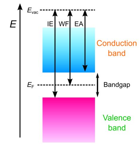 半導体はバンドギャップで区分されますが、伝導バンド・価電子バンドの相対位置も同じくらい重要です.電池の電極材料や太陽電池などでもバンド位置は常に意識されます.