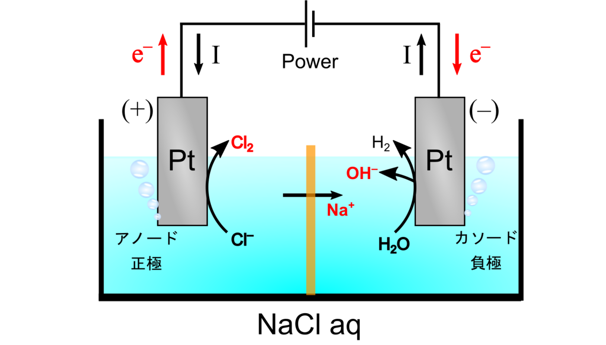 最後に電気分解反応を見ていきます.といっても、起こっていることは電池の充電反応と同じことです.