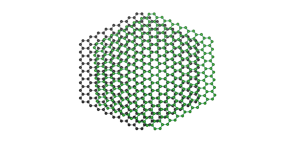 グラフェンは原子一層分の厚みしか無いために、基盤との相互作用で容易にたわんでしまい、物性に影響を与えてしまいます.これを避けるためには原子レベルでフラットな基板材料が求められます.六方晶窒化ホウ素はこの要望を満たすものであり、日本のNIMSのグループが製造の中心を担って世界中のグラフェン研究を支えています.[e]