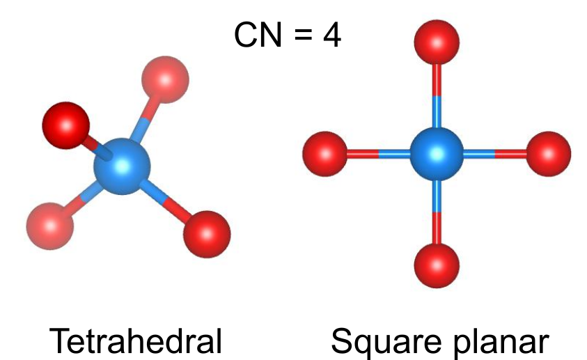 四面体配位と正方形配位の二種類の配位構造が考えられます.