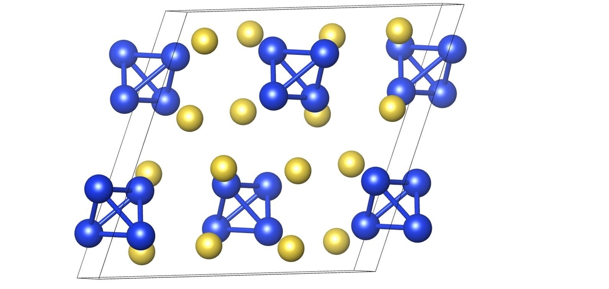 一方で、陰イオンが孤立していてもZintl相と呼ばれる場合があり、厳密なルールという訳ではありません.典型元素のみからなる物質がZintl相とされますが、遷移金属を含んだ系に拡張されるケースもあります.